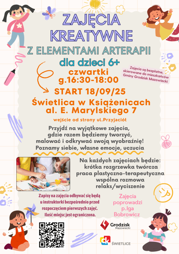 Przypominamy, że wszystkie zajęcia i warsztaty organizowane w świetlicach są bezpłatne, ale przeznaczone wyłącznie dla mieszkańców Gminy Grodzisk Mazowiecki.
